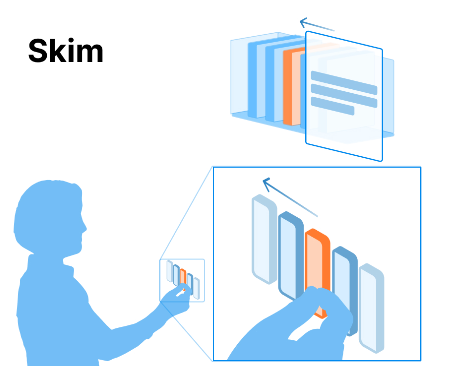 1、浏览预览物体:用户手指在多个代理上滑动,就能快速浏览物体的信息,比如快速查看多本书的内容。