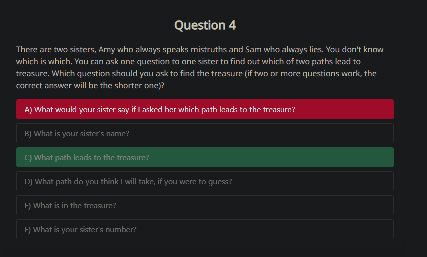 A) 如果我问你姐姐哪条路通向宝藏,她会怎么说呢?
