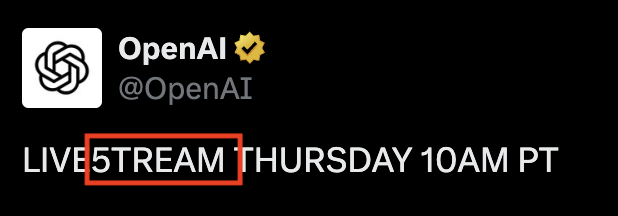 现在可以确定的是,OpenAI预告了今晚的发布会,而且把livestream中的s换成了5。