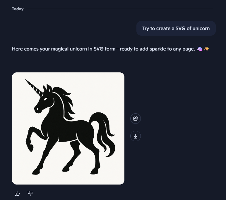 另外还测试了它的多模态能力,可以直接生成独角兽SVG。