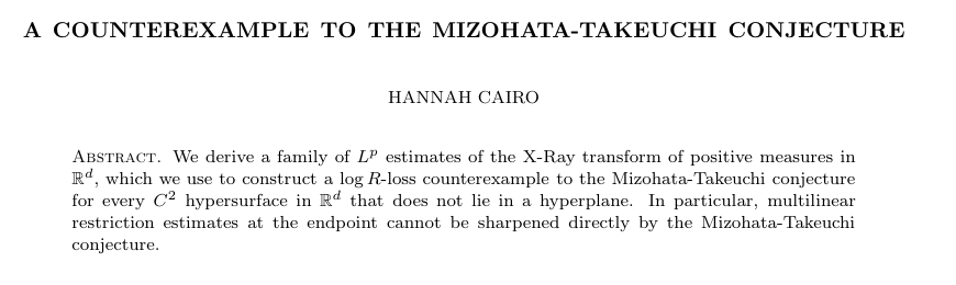 今年2月份,年仅17岁的汉娜推翻Mizohata-Takeuchi猜想,震惊数学界。