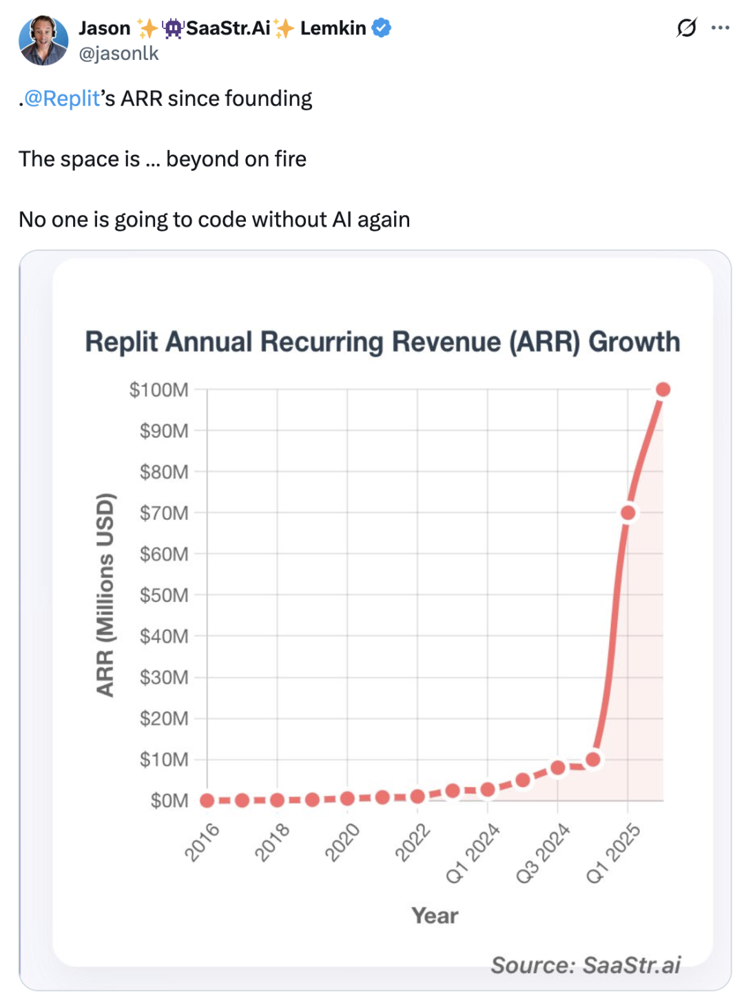 - Replit:ARR1亿美元,估值11.6亿美元——18个月内增长10倍