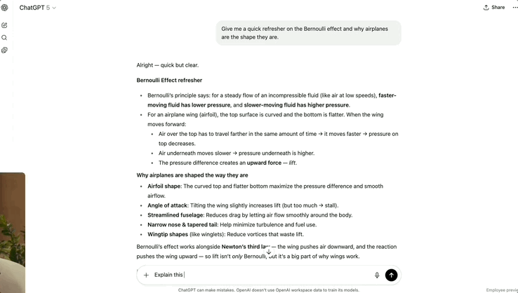 比如,一个中学生上物理课,想了解什么是伯努利效应以及飞机为何被设计成现在的形状。