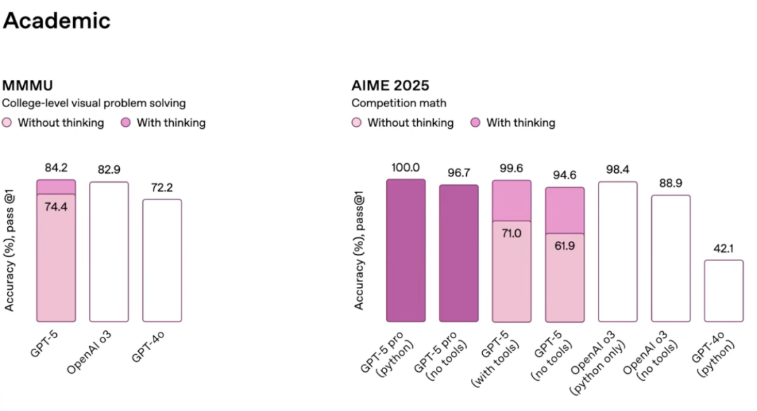 在AIME 2025上,GPT-5 Pro在开启推理模式并调用工具下,拿下满分成绩。