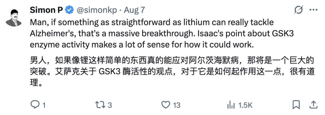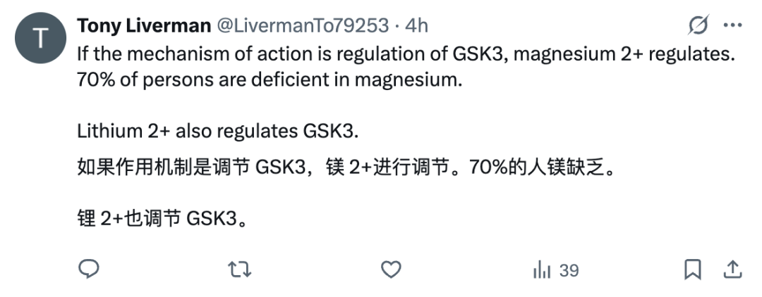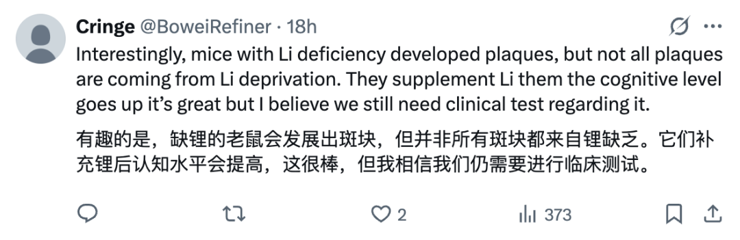 也有网友提出了一些亟待解答的不足,例如淀粉样斑块的形成机制,以及锂的副作用等问题。