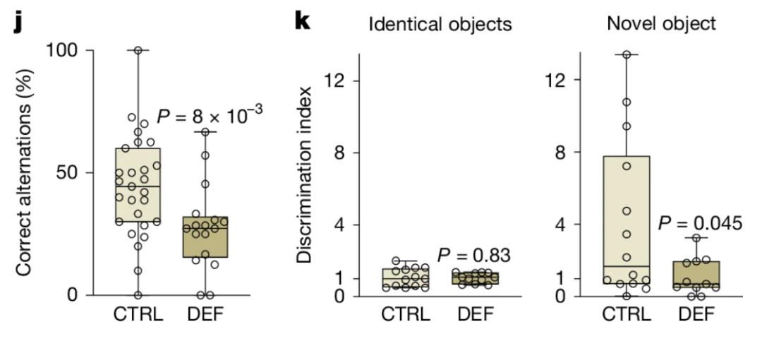 3xTg小鼠的锂缺乏还导致了Y迷宫和新物体识别测试中记忆的显著缺陷(图j,k)。