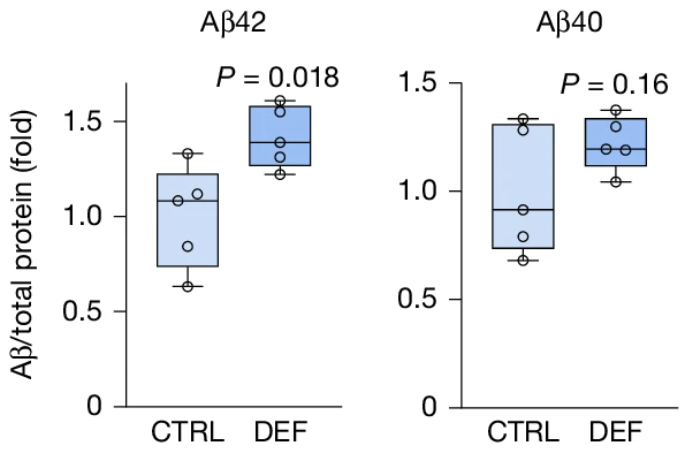 结果显示,锂缺乏加速了AD小鼠模型中的Aβ沉积,并增加了老龄野生型小鼠中的Aβ42水平。