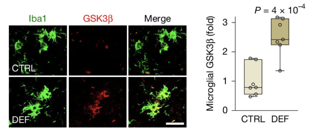 在另一种转基因AD小鼠模型J20中,锂缺乏同样增加了CD68+反应性小胶质细胞的密度。