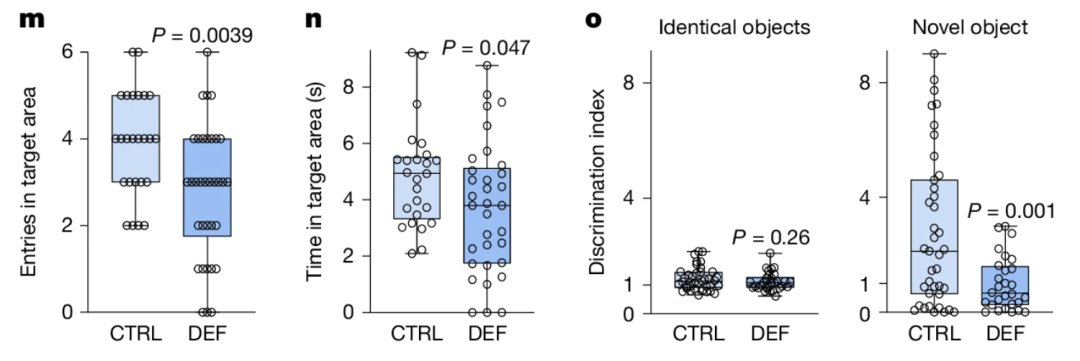 此外,衰老的缺锂野生型小鼠在莫里斯水迷宫(图m,n)和新物体识别测试(图o)中也表现出显著的记忆丧失。
