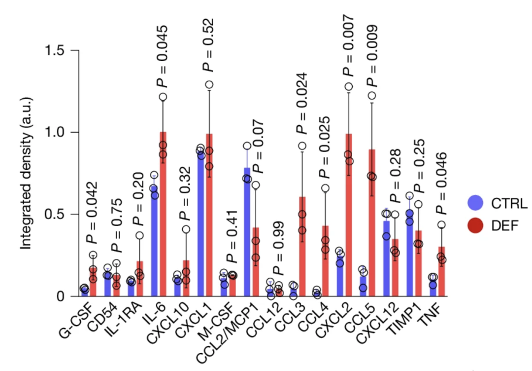 为探究功能改变,研究团队在体外用脂多糖(LPS)刺激分离的小胶质细胞。结果显示,来自锂缺乏野生型小鼠的小胶质细胞显示出促炎细胞因子(IL-6、TNF和G-CSF)以及免疫激活趋化因子(CCL3、CCL4、CCL5和CXCL2)的释放增加。