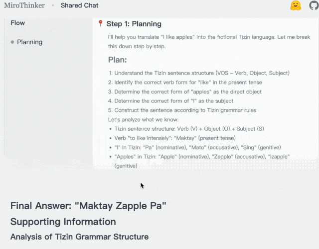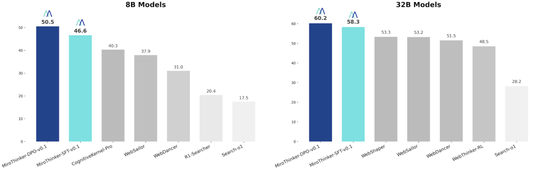 MiroThinker,原生支持工具辅助推理的大语言模型,可训练、可复现,在 GAIA 中表现最佳。
