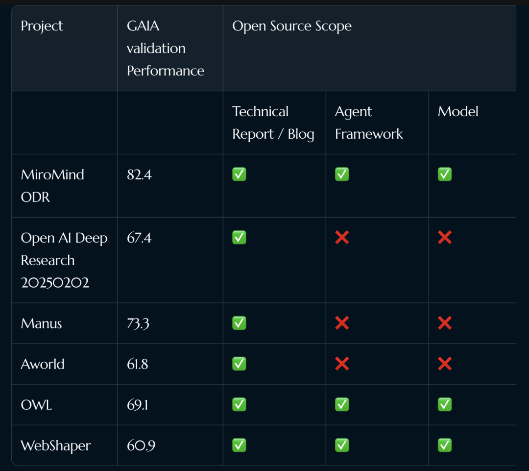 首先,它做到了性能最强,GAIA测试结果更是达到了82.4分,超过了一众开源闭源模型,其中包括Manus、OpenAI的DeepResearch。