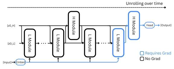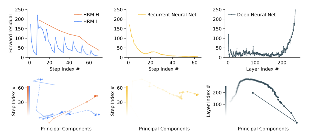 而HRM中,低阶模块在每轮计算中会收敛到基于当前高阶状态的局部结果,但高阶模块更新后,会给低阶模块设定新的目标,使其进入新的收敛周期。