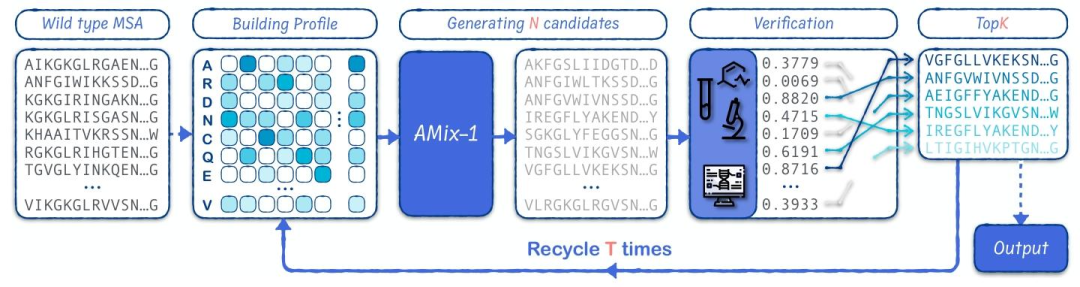 AMix-1支撑了该虚拟生物实验室的蛋白质生成与进化工作。