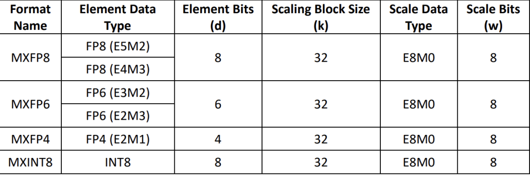 事实上,MXFP4并不是新概念。早在2023年的报告中,OCP就在报告《OCP Microscaling Formats (MX) Specification Version 1.0》中详细介绍过这一数据类型。
