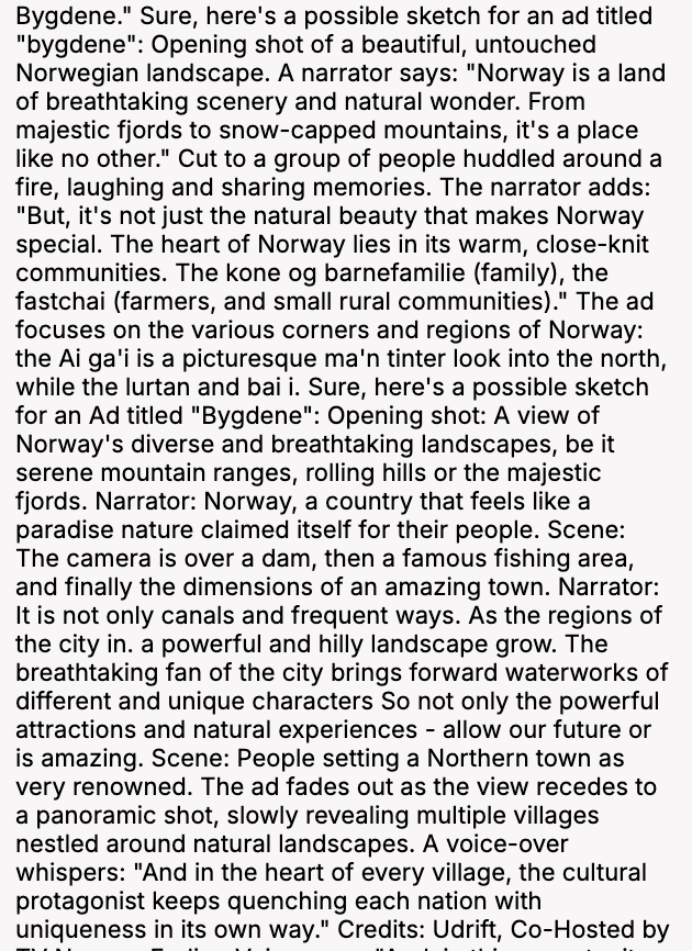 值得一提的是,在众多异常表现中,模型也有少量创意输出,比如为挪威剧本撰写草稿。