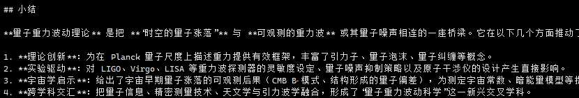 实际上并不存在这个理论,仅有“量子引力理论”或“引力波理论”。但GPT-oss-20b还一本正经地说这是一个新兴交叉学科……
