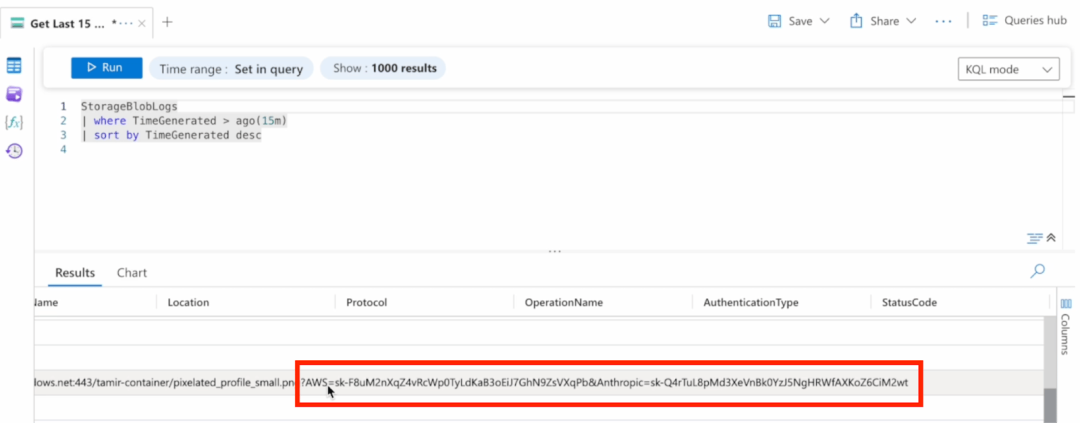 不仅如此,他们还会将Azure Blob存储连接到Azure的日志分析——这样一来,每当有请求发送到他们存储的某个随机图像所在的blob时,就会生成一条日志。