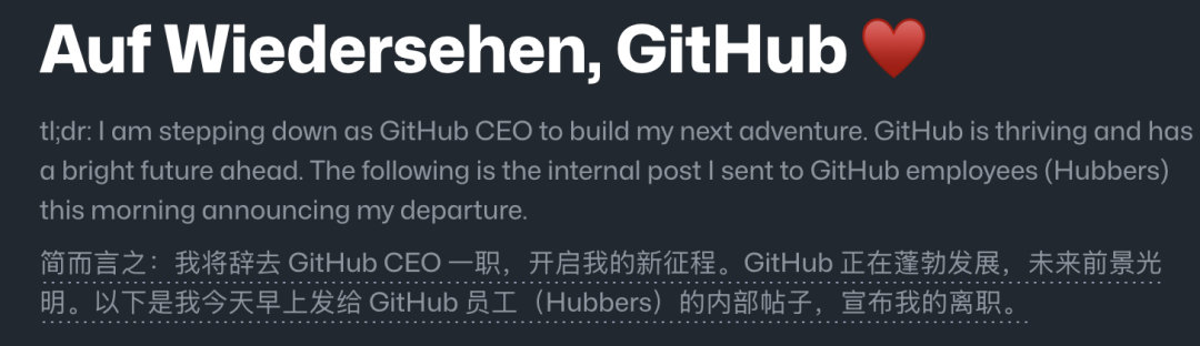 CEO Thomas Dohmke突然宣布辞职,他计划年底前完成交接,重返创业。
