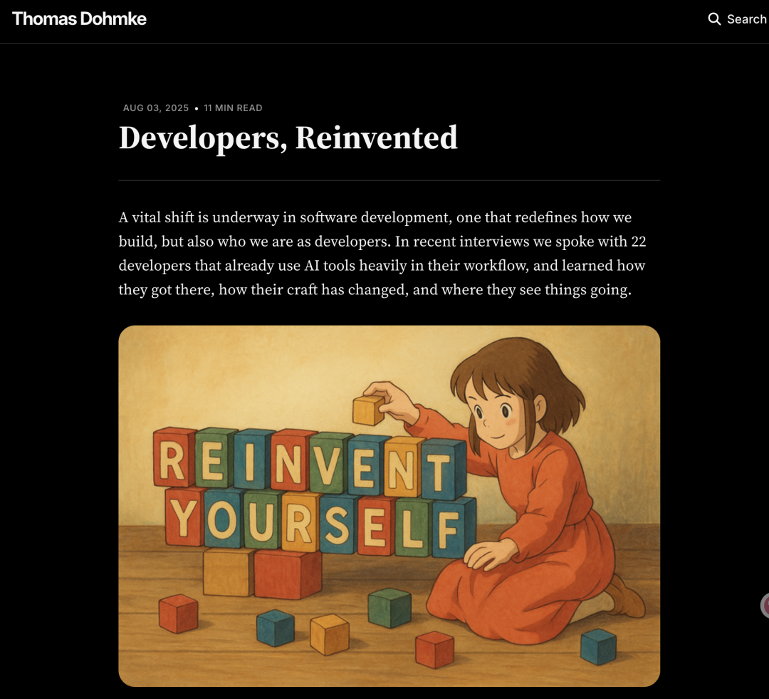 他认为AI不会取代开发者,而是会重塑他们,将他们从代码编写者转变为“AI战略家”或“代码赋能者”。
