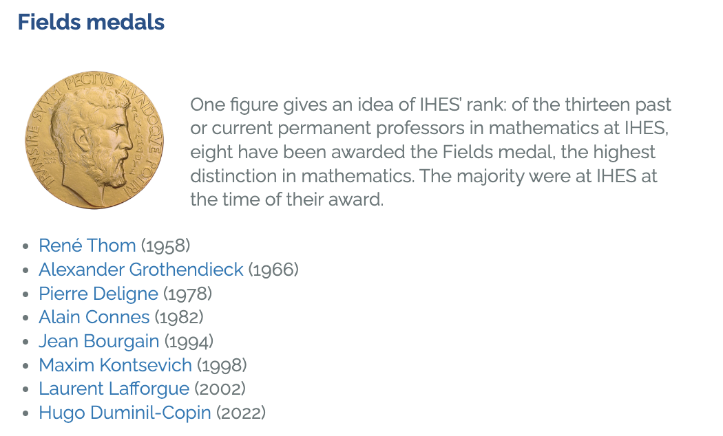 若要算上历任IHES常任教授,有8人是菲尔兹奖获得者: