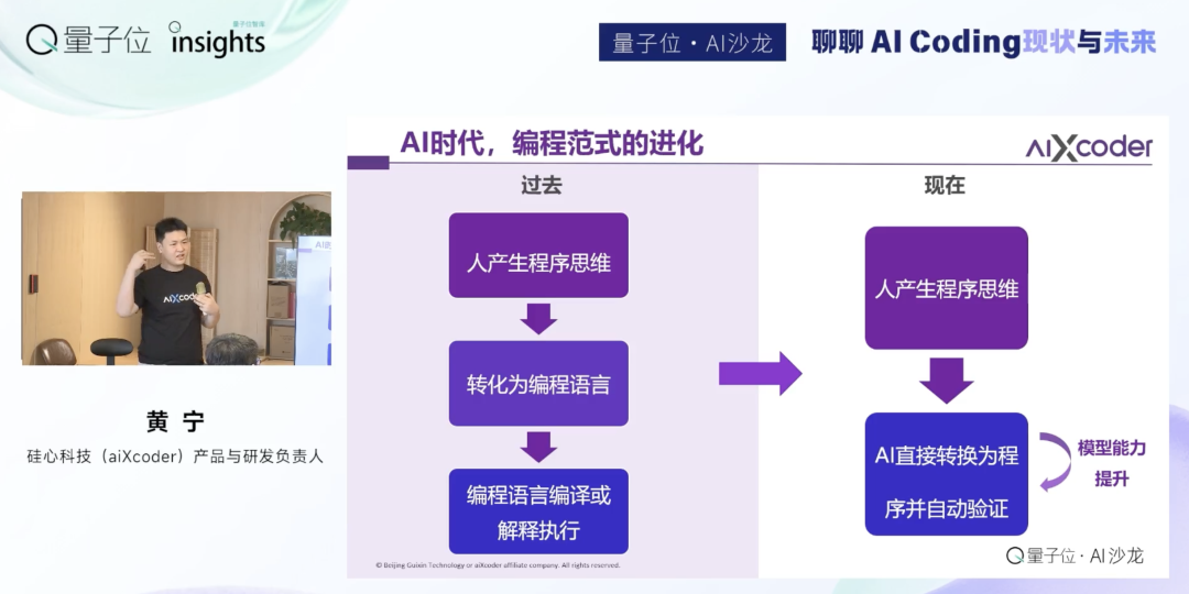 aiXcoder黄宁:我自己也是一个使用者,所以我真的是感同身受,很多时候是希望他帮我把活干掉,我希望分配给它一个端对端的任务,然后它直接帮我根据自然语言生成出来。