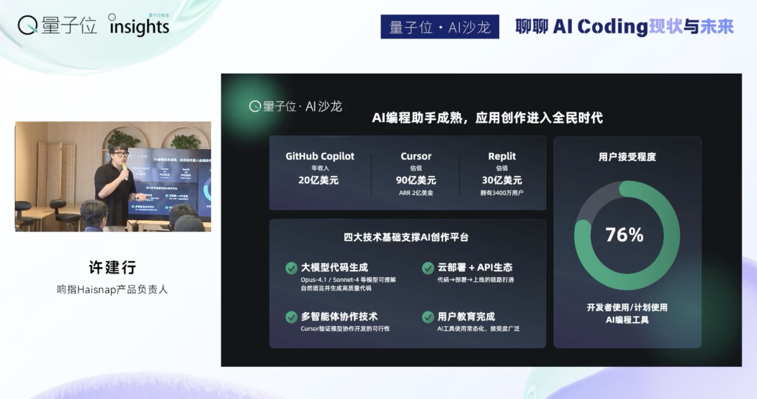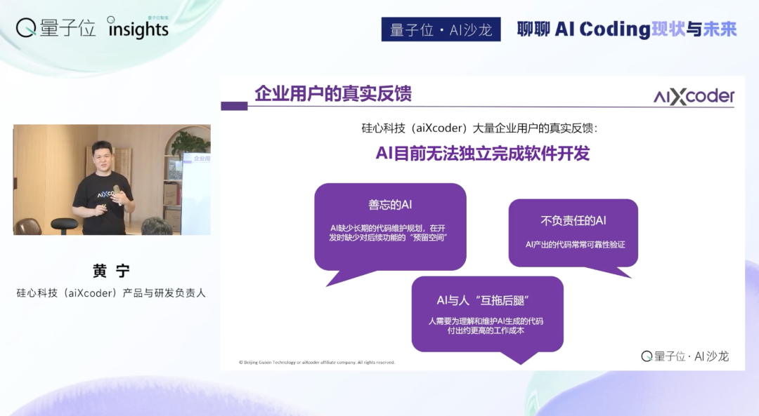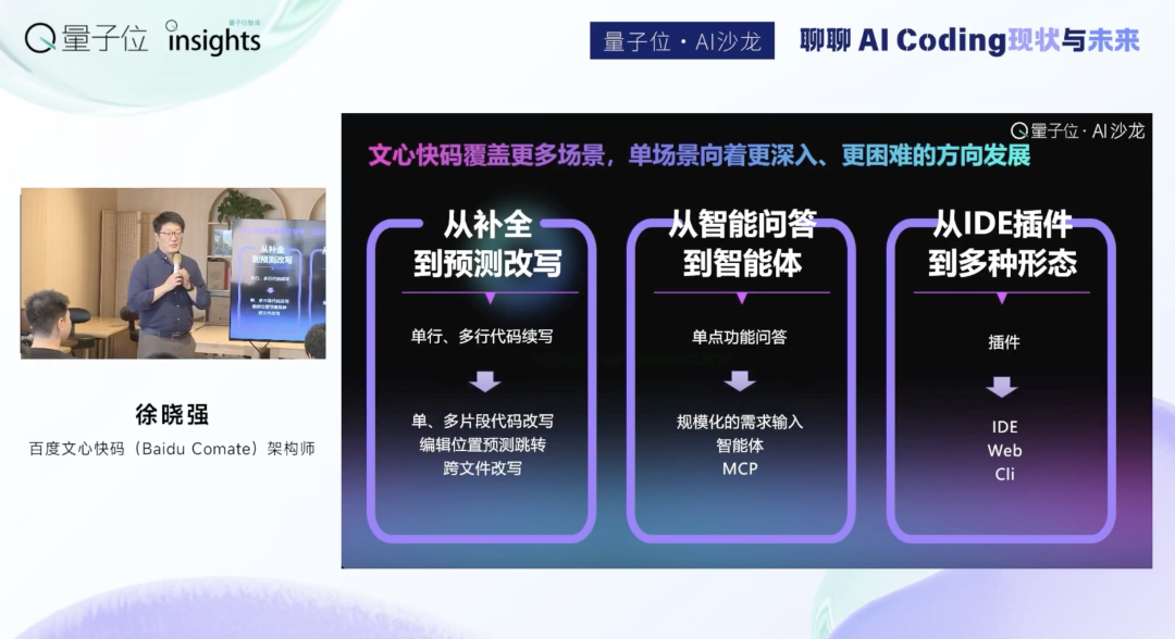 在量子位最新举办的AI Coding沙龙上,来自百度文心快码、硅心科技(aiXcoder)、智谱、月之暗面、海新智能、Creao AI、IDEA研究院的多位行业一线玩家,站在模型、产品、用户的不同视角,给出最鲜明、最直接的回答。