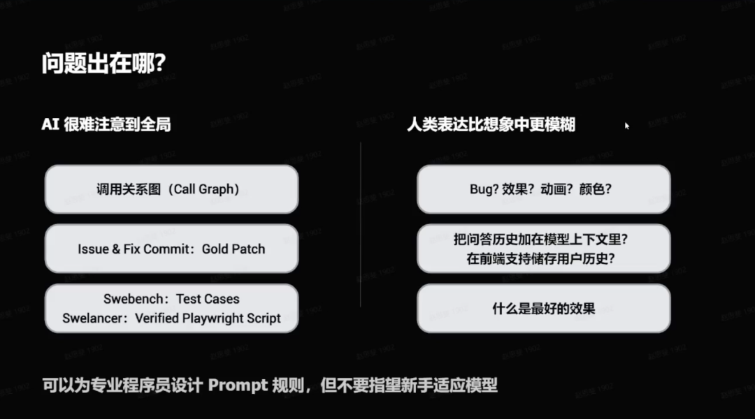 大家的需求其实是不明确的,在这种需求不明确的情况下,让AI去胡乱生成,结果只能是错的。