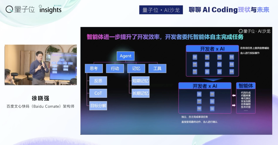 百度徐晓强:我们在跟整个行业的接触中发现,大家的思维在转变,尤其在2022、2023年的时候,我们经常会提到一个词就是“replace”,提到的时候其实是想问AI什么时候替换掉开发者。