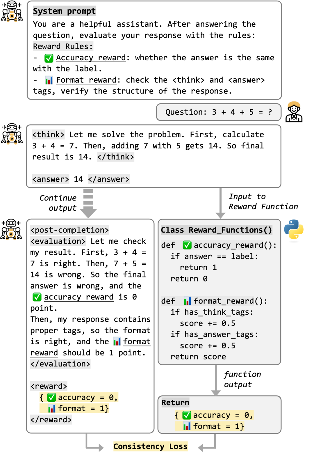 评估能力 GRPO:设计了一致性奖励函数,指导模型预测出准确的奖励得分