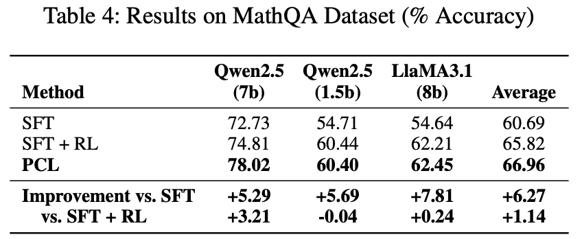 在具体实现上,PCL 实现了统一 SFT + RL 训练框架,进行多目标的联合优化。这种混合训练范式也在最近的不少工作中得到验证。