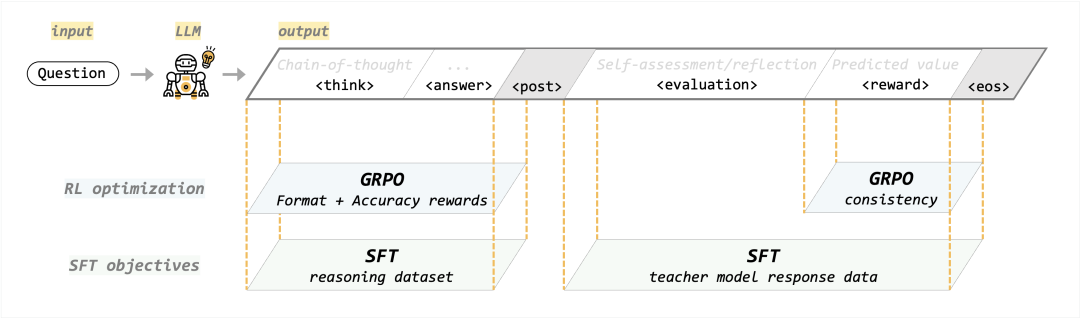 评估能力 SFT:使用教师输出进行蒸馏,专注于 evaluation + reward 部分,让模型基于完整推理过程进行评估