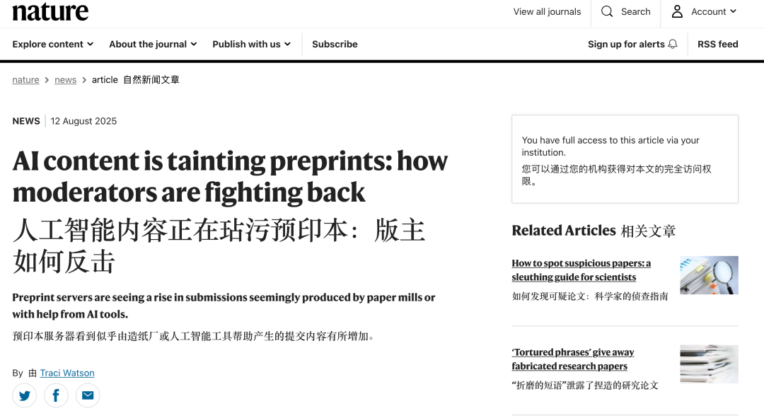 本来是方便快速分享成果的预印本平台,现已成为了AI内容的温床。