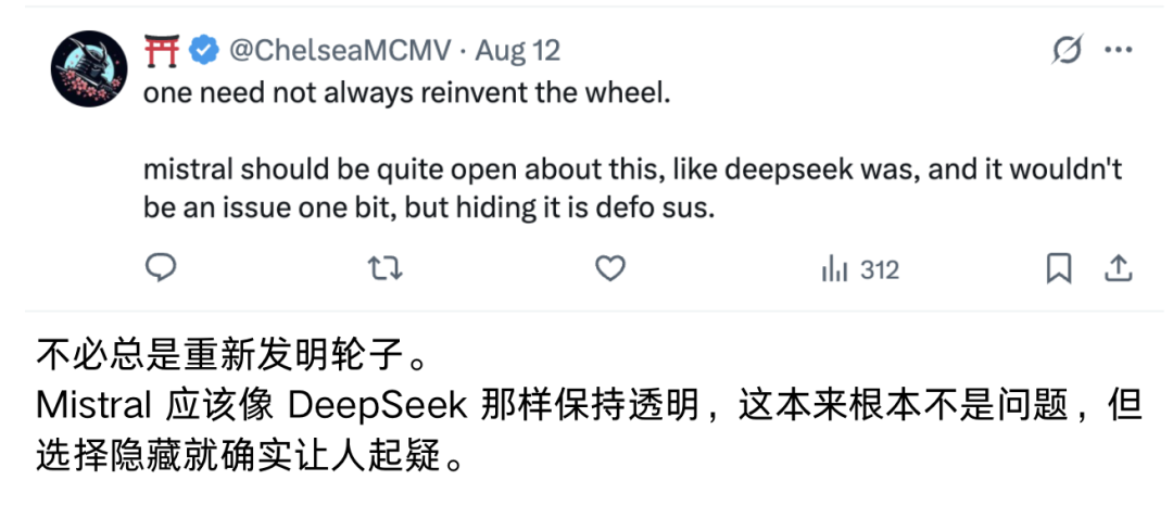 有意思的是——今年2月,还有网友调侃DeepSeek是“中国的Mistral”。