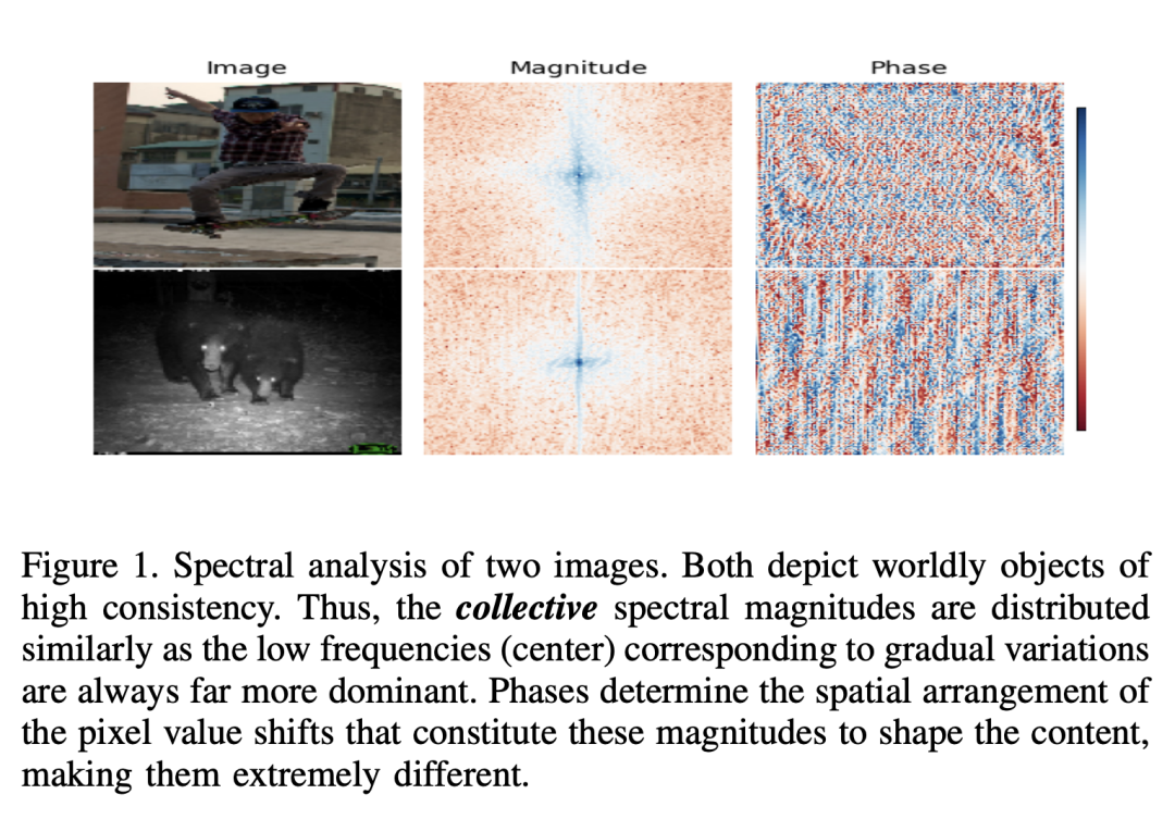 频谱特征描述的是图像中像素值彼此之间的变化方式,由频谱幅度(Magnitude)和频谱相位(Phase)两个要素构成。