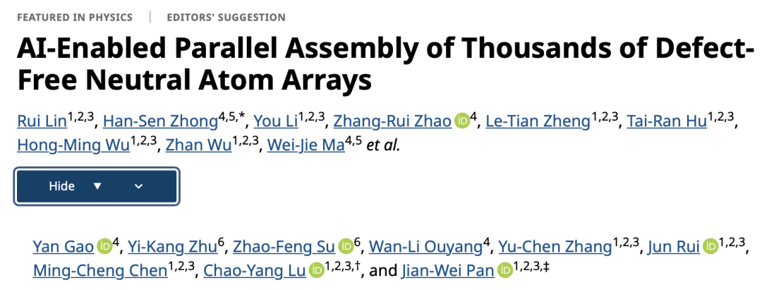潘建伟团队利用AI技术,在60毫秒内成功构建多达2024个原子的无缺陷二维和三维原子阵列,刷新了中性原子体系无缺陷原子阵列规模的世界纪录。