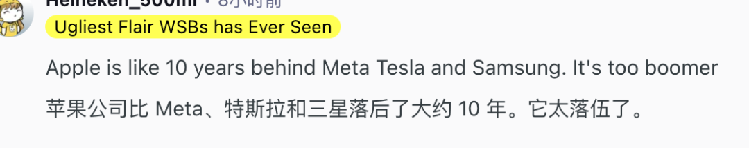 有网友就毫不留情地表示:苹果在AI赛道上太落后了。