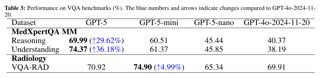 来自埃默里大学医学院的研究团队把GPT-5和GPT-4o以及更小的GPT-5变体(GPT-5-mini、GPT-5-nano)进行了比较,分析它们在医疗领域处理多模态信息的能力。