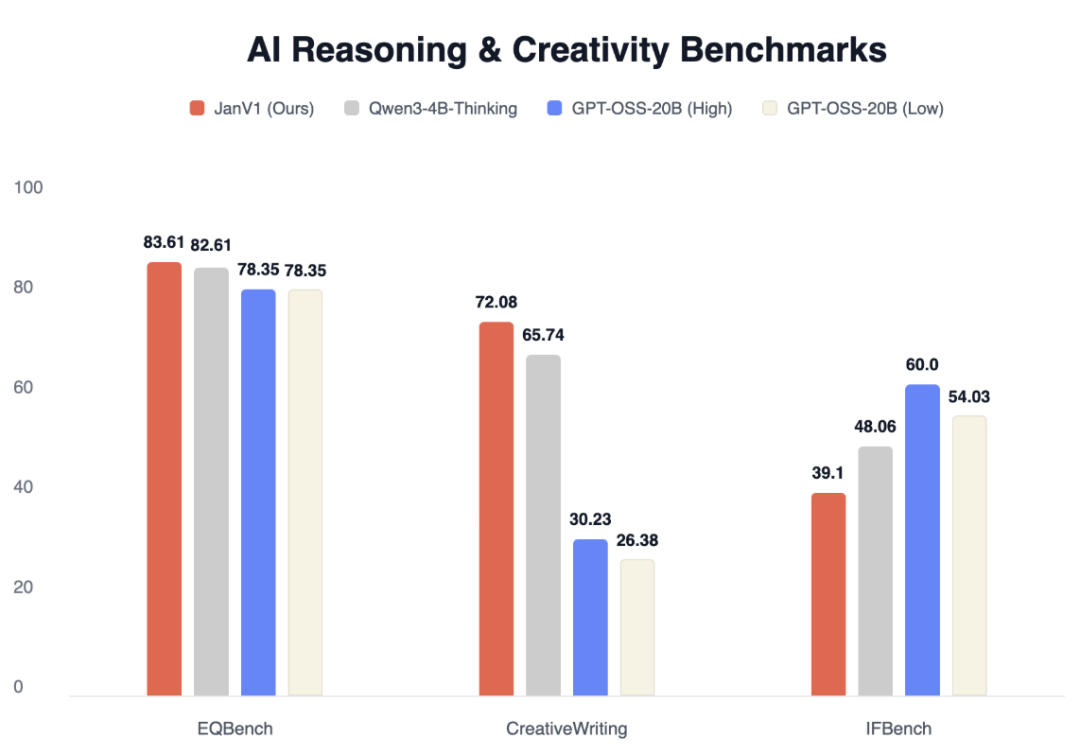 在对话和指令能力上,Jan-v1的表现也相当不错。