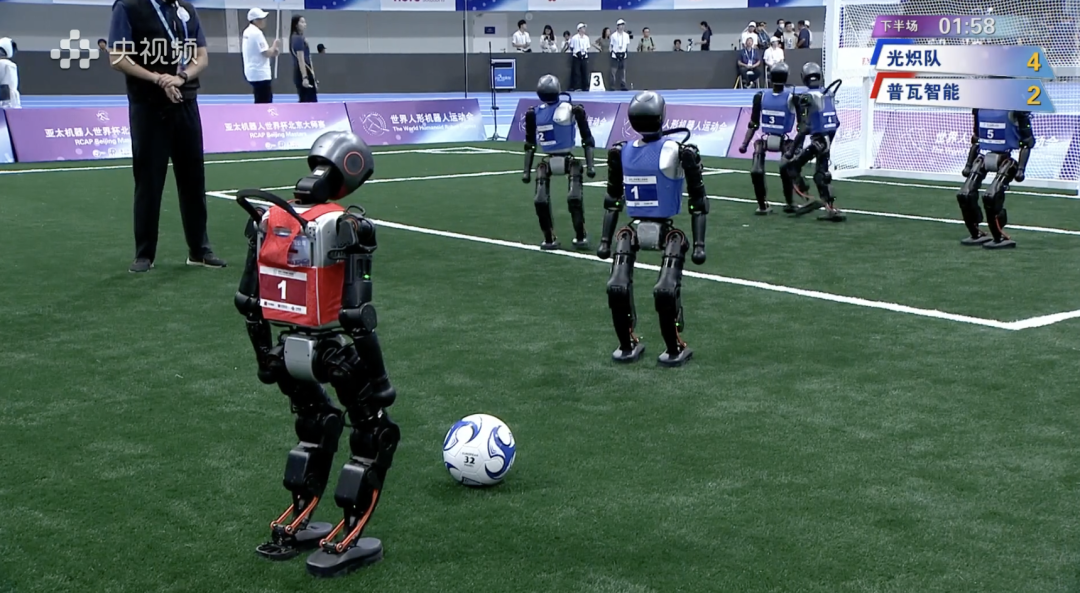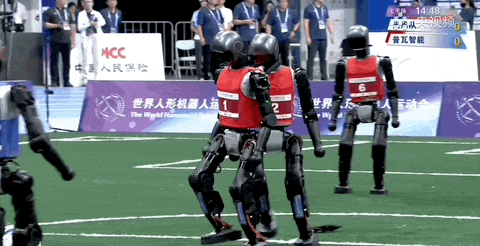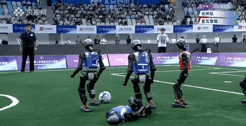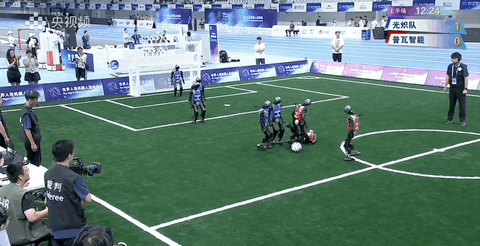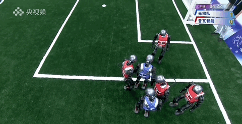 值得一提的是,红队选手在下半场的表现明显更好,都有反转的迹象。这有点超出一般认知,毕竟机器人踢球主要是看算法,算法好的理论上就会一直领先,但从结果来看,在人类足球比赛中经常上演反转大戏,在机器人这也不是没可能。