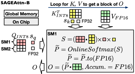 通过引入FP8量化注意力算子,将Transformer中的注意力计算使用INT8,同时结合动态平滑与硬件优化,实现推理速度提升2倍以上,精度损失<1% 。