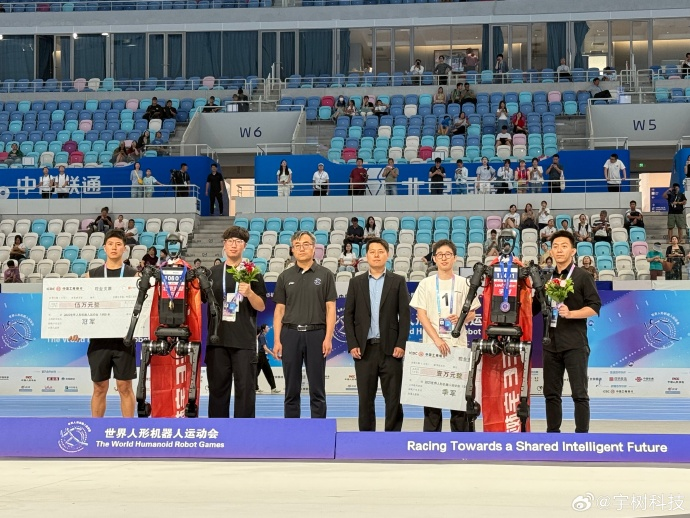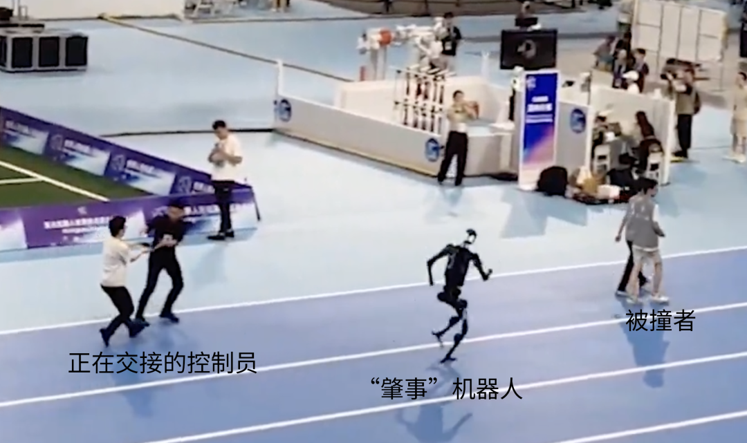 但是昨天宇树机器人撞人后还拿了个1500米第一,摘得首届人形机器人运动会的首金。