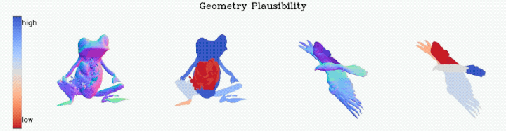 “几何合理性”侧重的结构完整性、保真性,不存在多头、塌陷、浮空等违背物理规律。