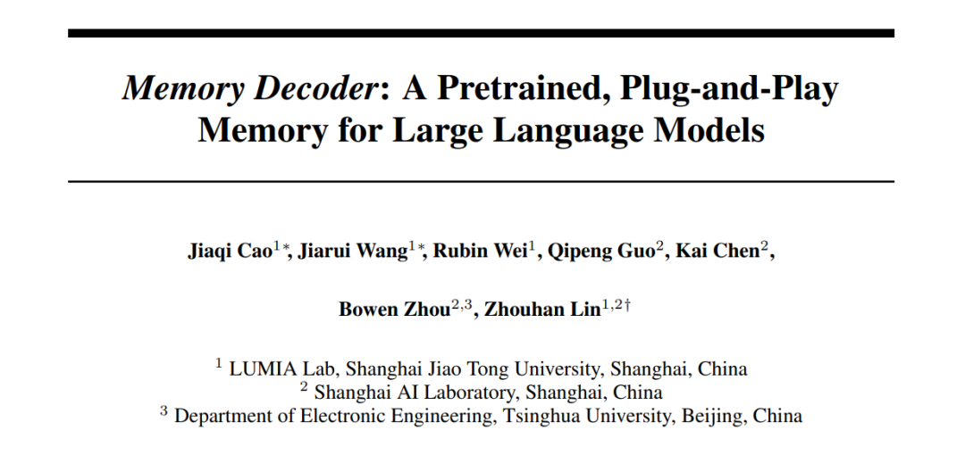 好好好,不卖关子了,原来这是来自上海交大、上海AI Lab等机构的研究人员提出的一个名为“Memory Decoder”的预训练记忆模块——