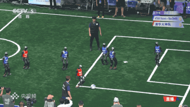 足球赛里的机器人全部都是自主行动,无人操控,机器人的数量越多,也就意味着复杂度越高。最早起源于1992年的RoboCup机器人世界杯,最新采用的就是3V3对战模式。