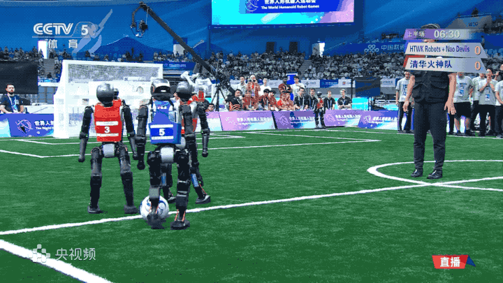 技术细节方面,咱们就展开讲讲开头提到的机器人5V5足球赛。实际上,这是此类赛事首次上演5V5规格——