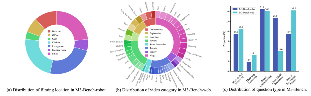 - M3-Bench-web,包含920个网络来源的视频,涵盖更广泛的内容和场景。