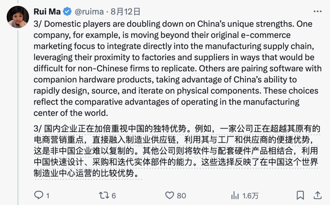 这个专家也是个华人,名叫Rui Ma,是科技播客Tech Buzz China的创始人兼分析师,同时还是独立天使投资人。
