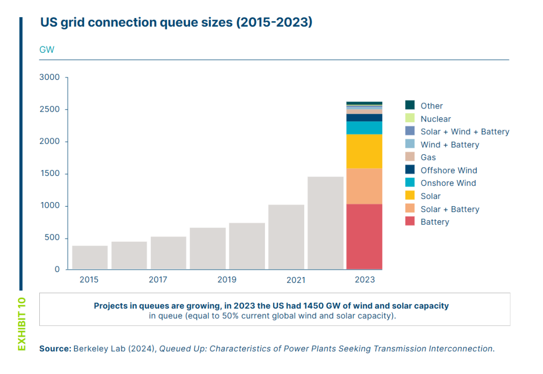 尽管全球各地都面临项目迟迟未上马这一问题,但美国面临的挑战尤其严峻,目前其等待连接的项目数量与2020年相比翻了一番。