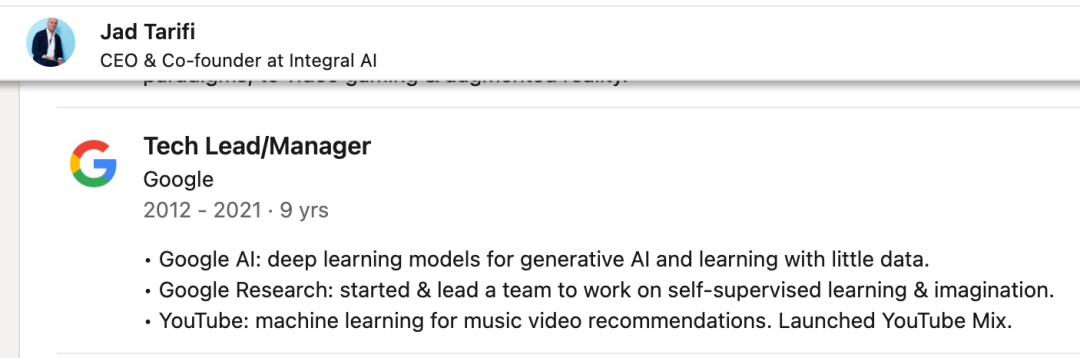 Jad Tarifi,这位在谷歌待了近十年、参与创立了谷歌第一个生成式AI团队的大佬,最近直接开炮: